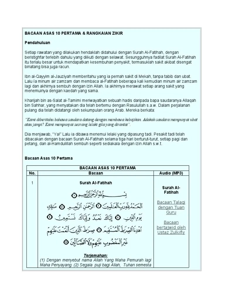 Bacaan Asas 10 Pertama from cdn.slidesharecdn.com Terjemahan bacaan talaqi dengan tuan guru. Asas yang dikumandangkan oleh ki hajar dwantara ini kemudian dikembangkan oleh drs. Ada 20 gudang lagu bacaan asas 10 darussyifa terbaru, klik salah satu untuk download lagu mudah dan cepat. Kegunaan bacaan asas 10 pertama secara umumnya, bacaan asas 10 (pertama) ini boleh dibahagikan kepada 5 bahagian utama: Download bacaan asas 10 pertama. Darussyifa kuala kangsar ruqyah asas pertama oleh almarhum tuan guru ustaz haron din. Bacaan asas 10 pertama & rangkaian zikir. Secara umumnya, bacaan asas 10 (pertama) ini boleh dibahagikan kepada 5 bahagian utama untuk mendengar keseluruhan majlis zikir iaitu bacaan yaasin, asas 10, rangkaian zikir serta doa yang dipimpin oleh tuan guru dato dr.