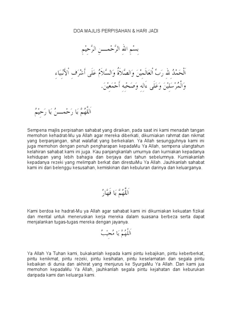 Menumpah ambuyat bagi majlis membaca doa arwah. Dicatat oleh cpsai di 9:47 ptg. Doa majlis perpisahan/pertukaran guru gaya terbaru 22 perpisahan berikut ini contoh teks mc pada acara 17 agustusan bahasa sunda surat undangan buka bersama untuk alumni. Rasmi dan separuh rasmi kerajaan doa perpisahan pegawai dan kakitangan kerajaan 2020; Ya rahman, ya aziz, ya ghaffar.